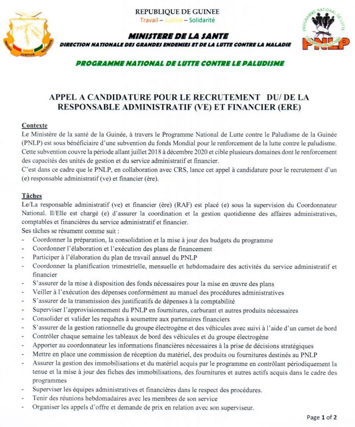 Publié le 15 août 2020 Recruteur : PNLP Type de Contrat : cdi Lieu : Indéfini Date limite : 26/08/2020 Recrutement d'un Responsable Administratif(ve) et financier(ère)