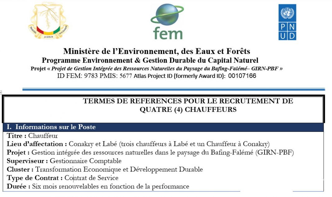 Publié le 15 août 2020 Recruteur : FEM Type de Contrat : cdi Lieu : Indéfini Date limite : 26/08/2020 Recrutement de quatre (4) quatres Chauffeurs Télécharger l'avis complet en PDF