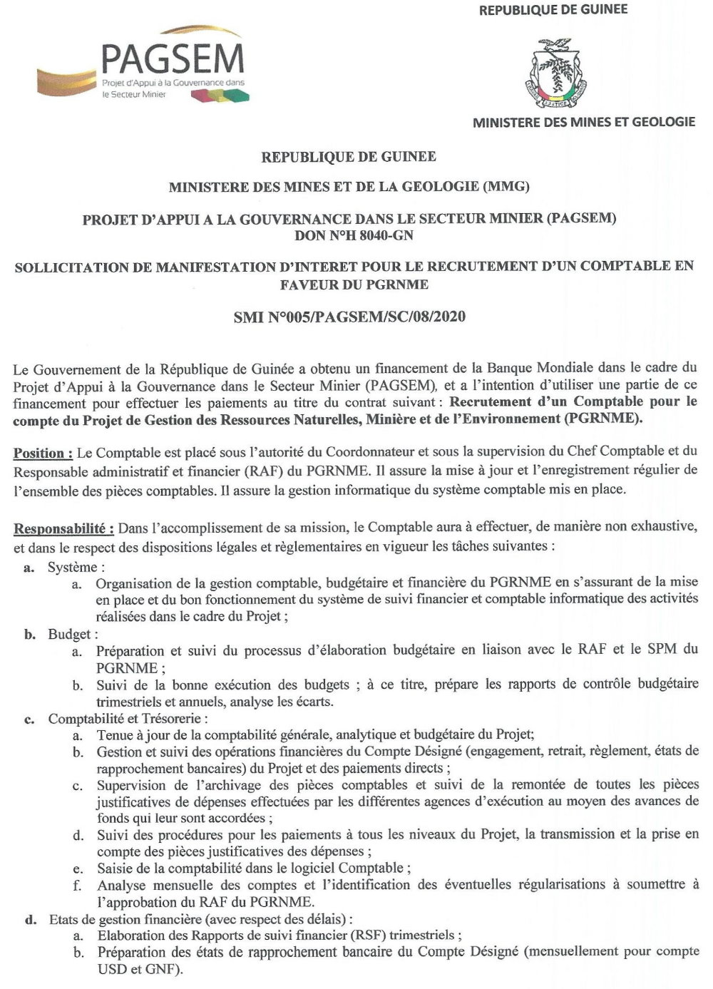 Publié le 17 août 2020 Recruteur : PAGSEM Type de Contrat : cdi Lieu : Indéfini Date limite : 31/08/2020 Recrutement d'Un Comptable