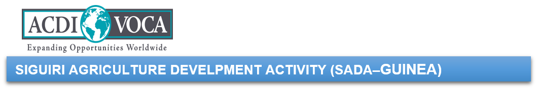 Les activités de SADA ont été officiellement lancée en décembre 2019 et se poursuivra jusqu'en novembre 2022, visant à améliorer les opportunités économiques pour les personnes et les communautés touchées par les opérations d'AngloGold Ashanti (AGA) (c'est-à-dire l'exploitation minière) dans la préfecture de Siguiri. Cela se fera par le biais d'une série d'interventions visant à renforcer la chaîne de valeur de la noix de cajou en mettant l'accent sur les liens en amont avec les petits exploitants agricoles et sur la formation et le renforcement des capacités de ces exploitants et des prestataires de services agricoles. Afin d'offrir des avantages équitables aux hommes et aux femmes de tous âges.