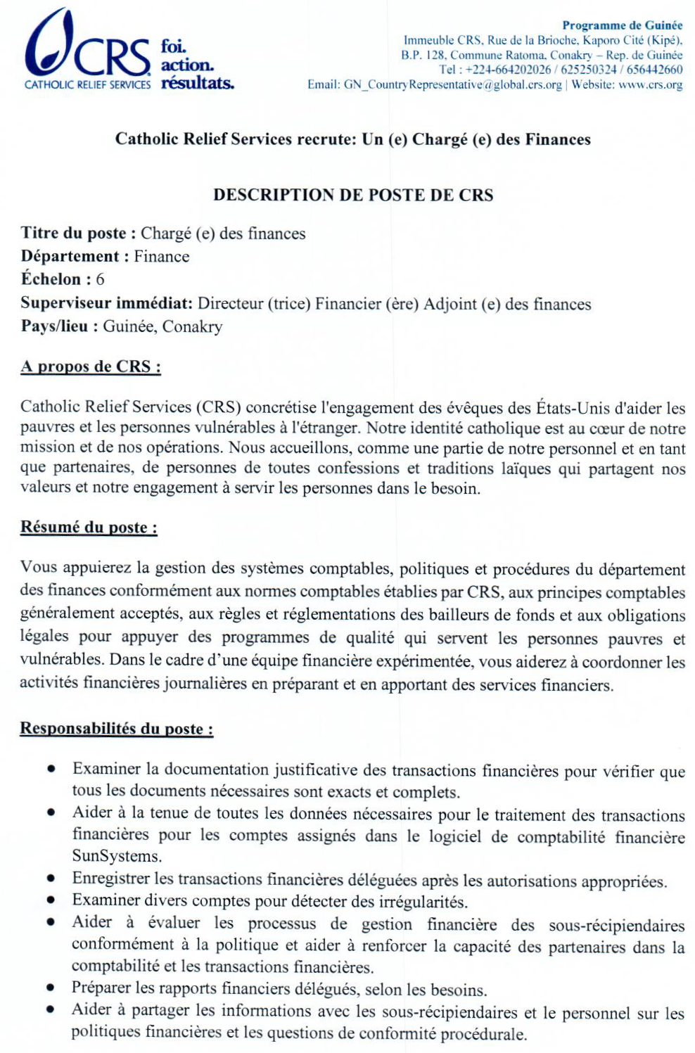 Publié le 2 septembre 2020 Recruteur : CRS Type de Contrat : cdi Lieu : Indéfini Date limite : 14/09/2020 Recrutement d'Un (e) chargé (e) des Finances