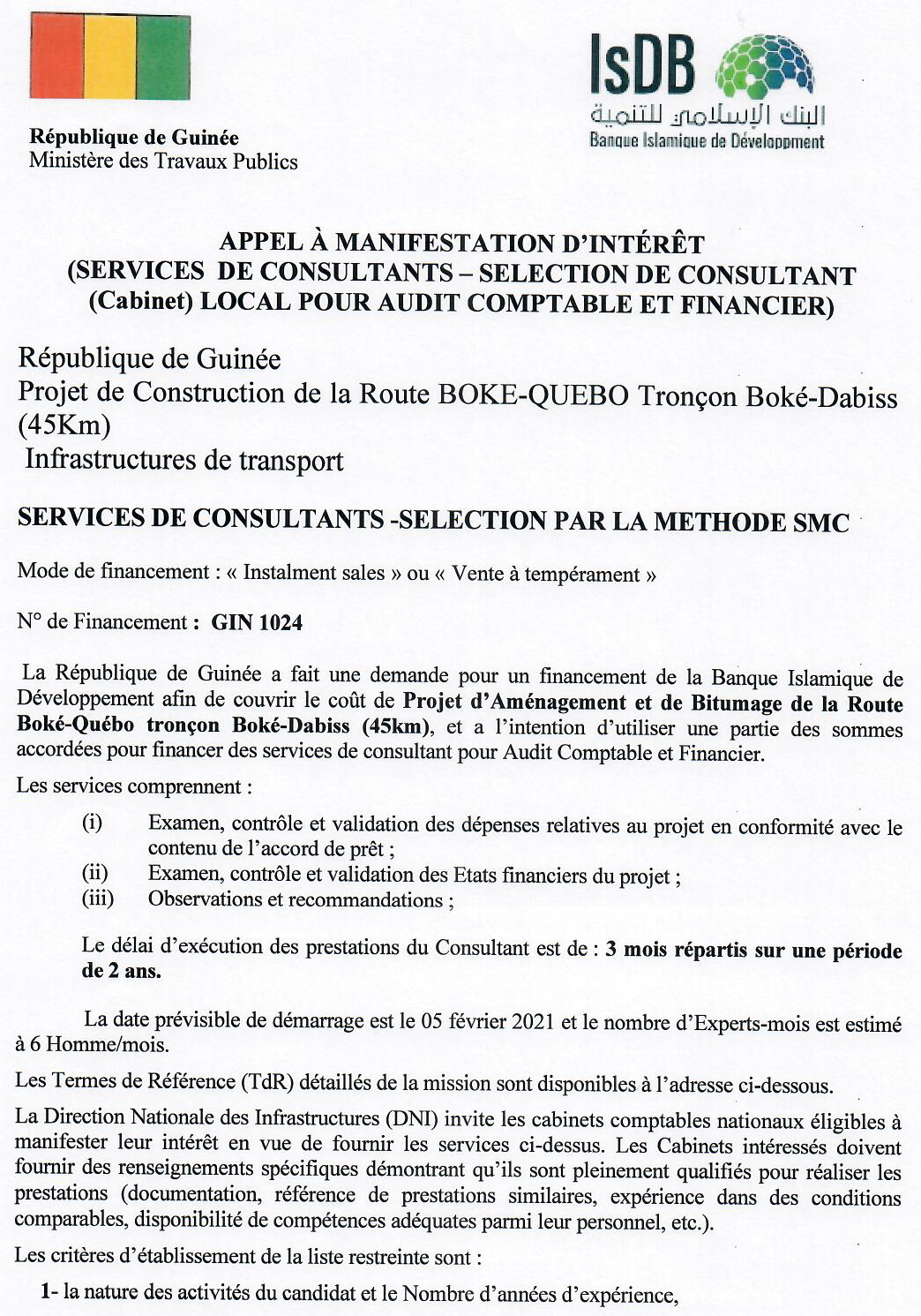 Publié le 7 septembre 2020 Recruteur : Banque Islamique de Développement (IsDB) Type de Contrat : cdi Lieu : Indéfini Date limite : 22/10/2020 Sélection de Consultant Local pour Audit Comptable et Financier