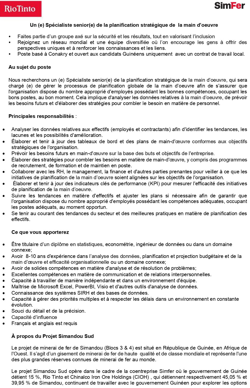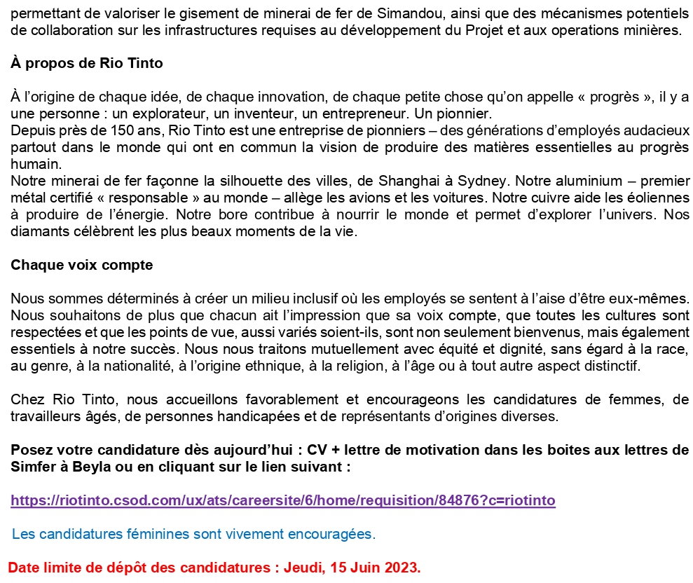 - Recruteur : Rio Tinto - Simfer