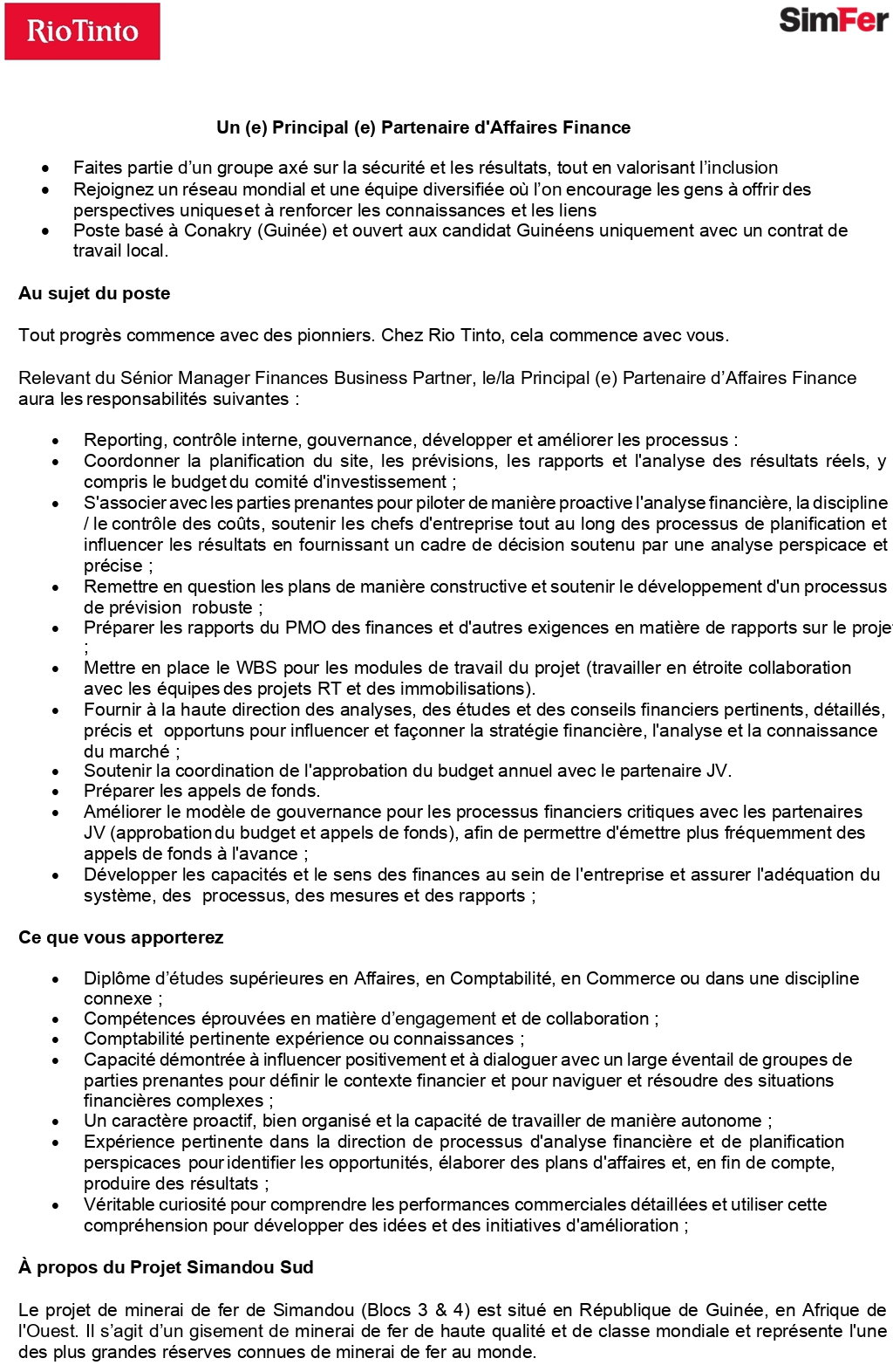 Recrutement D'un(e) Principal(e) Partenaire d'Affaires Finance