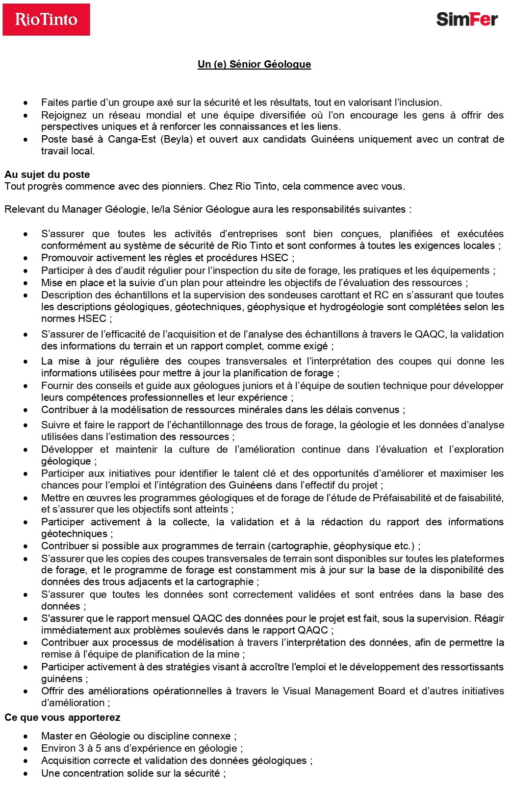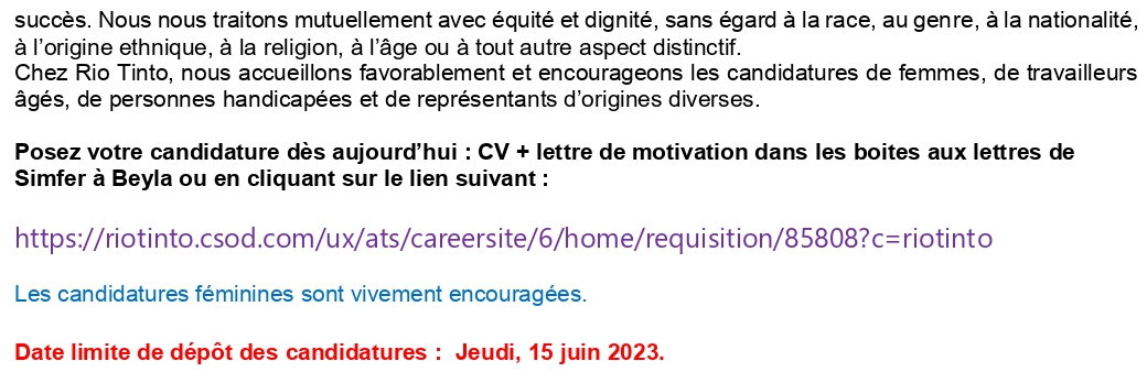 Posez votre candidature dès aujourd’hui : CV + lettre de motivation dans les boites aux lettres de Simfer à Beyla ou en cliquant sur le lien suivant :