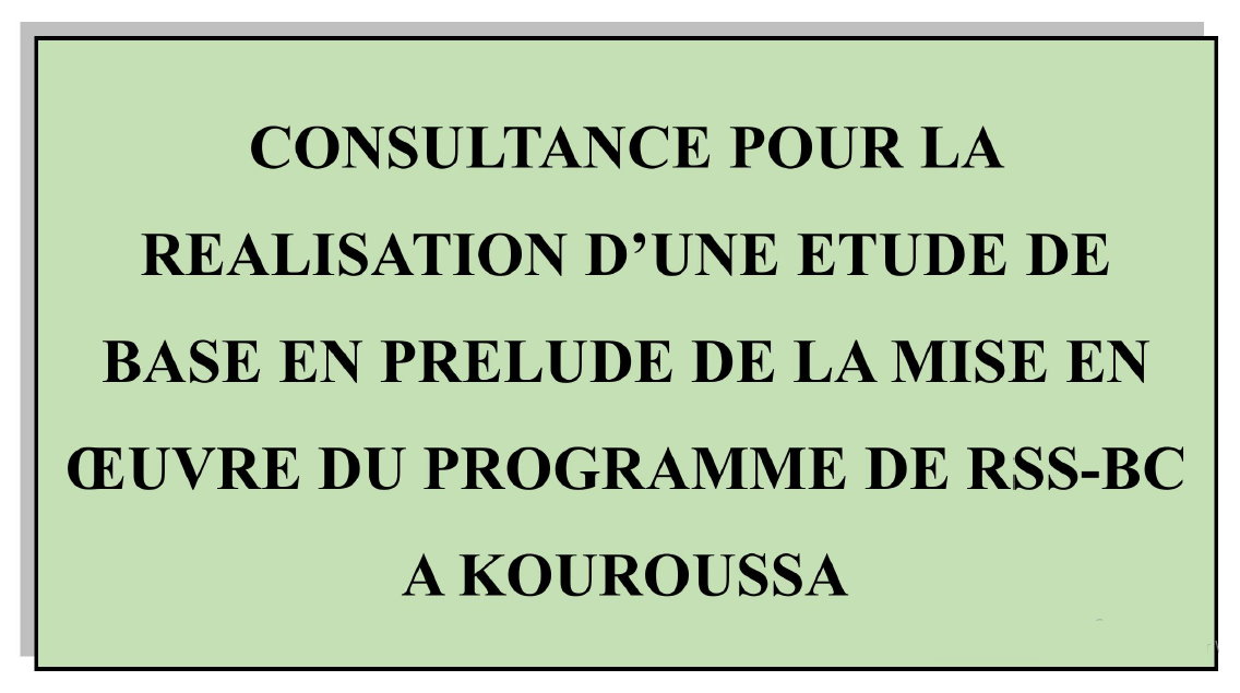 Consultance Pour La Réalisation D'une Etude De Base En Prélude De La Mise En OEuvre Du Programme De RSS-BC A Kouroussa Termes De Référence
