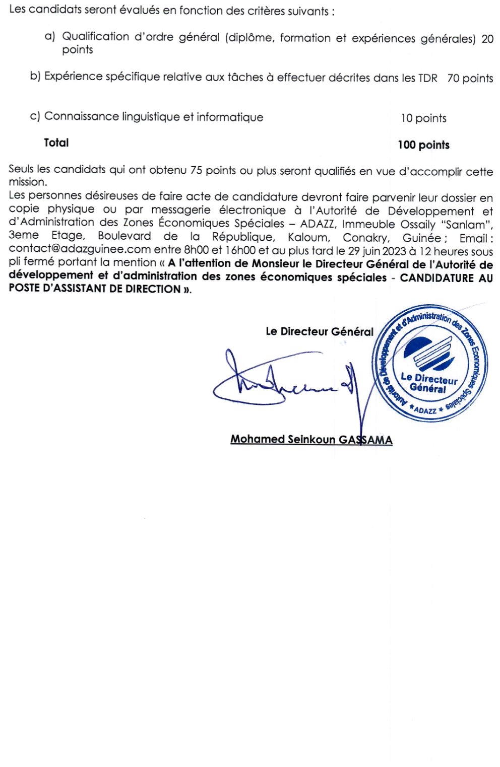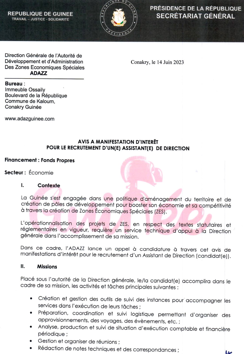 Publié le 26 juin 2023 Recruteur : Gouvernement Type de Contrat : ... Lieu : Guinée Date limite : 29/06/2023 Recrutement D'un(e) Assistant(e) De Direction
