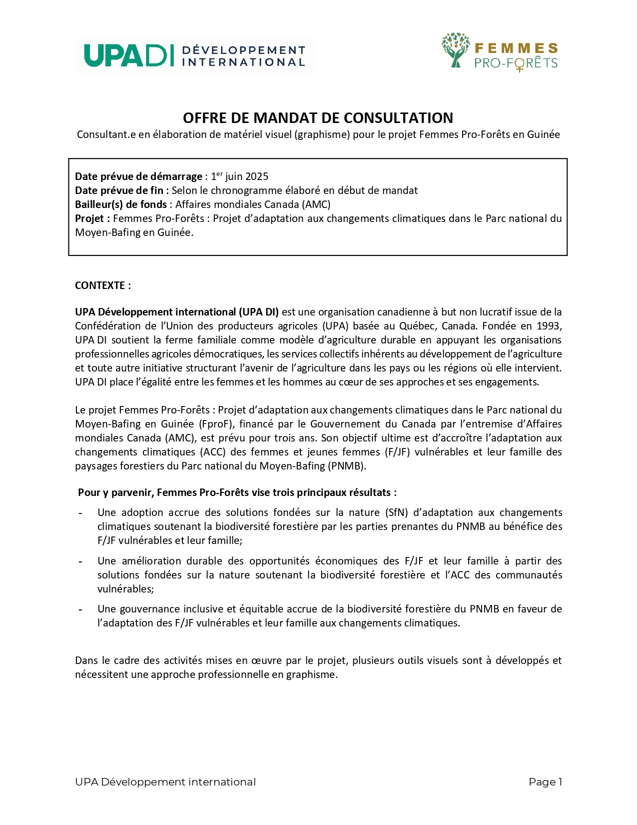 Recrutement D'un Consultant.e en élaboration de matériel visuel (graphisme) pour le projet Femmes Pro-Forêts en Guinée
